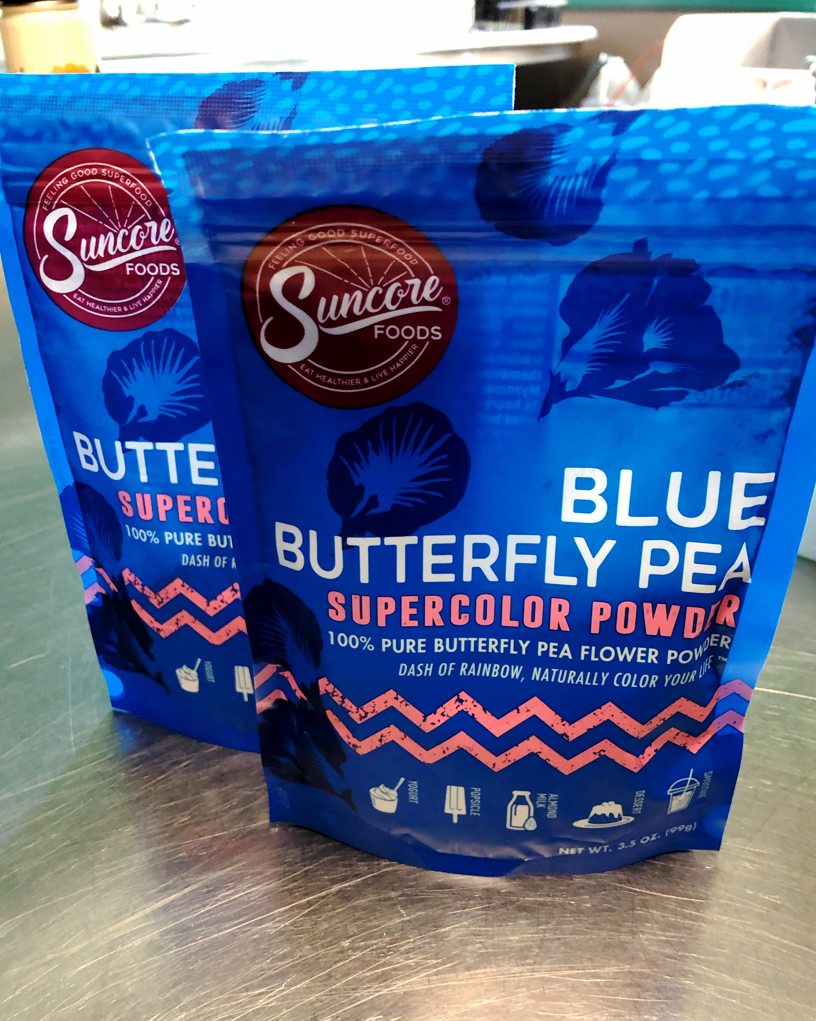 Oh la la, that gorgeous blue hue, how do we do it?? To mimic our lovely aquatic home planet, we used an outrageously fun, au naturale ~superfood~ called the butterfly-pea flower! It’s often used in the leaf form as an herbal tea (and easy to find on Amazon to impress your tea party friends!).