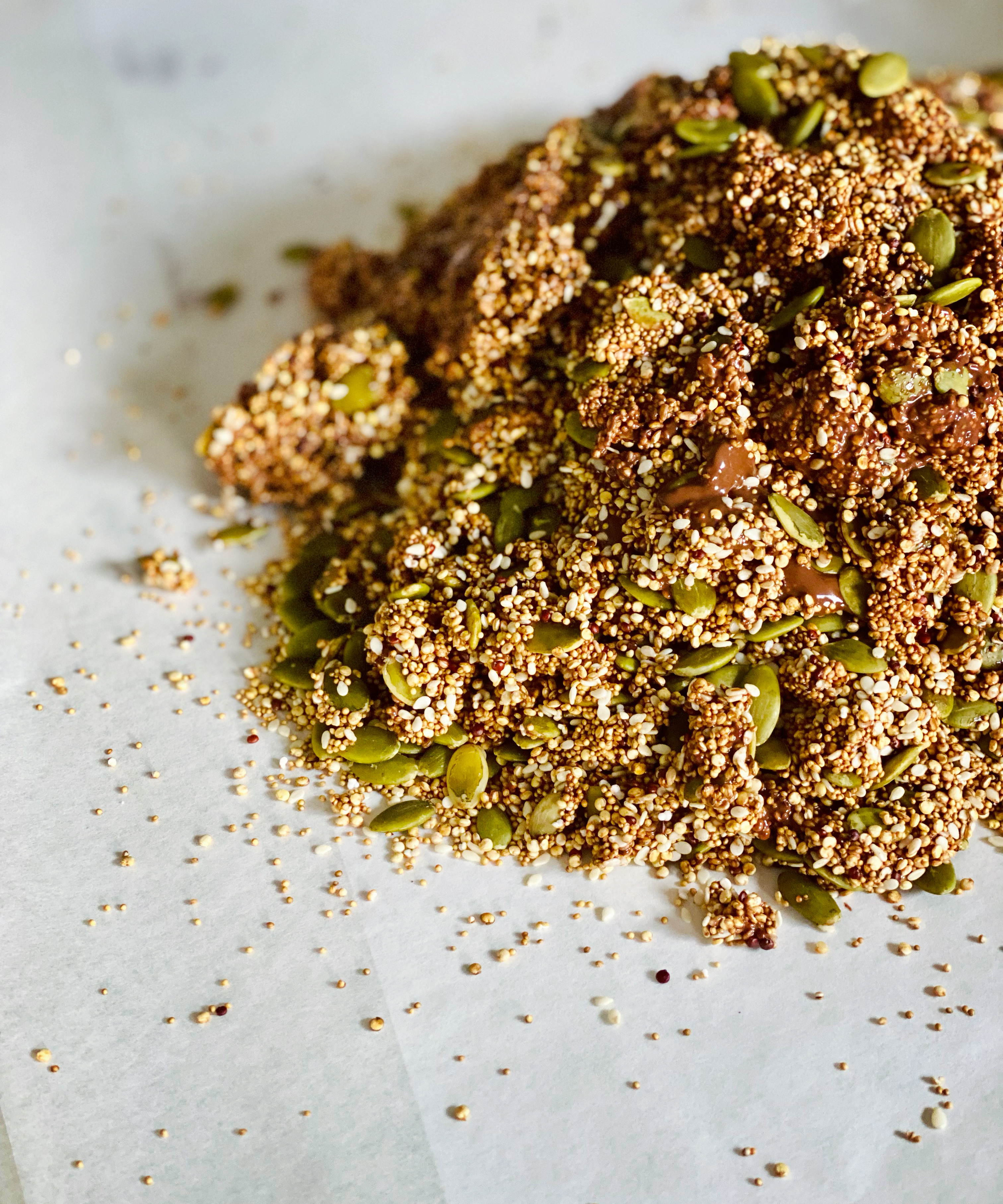 Taking a cue right from nature, this creamy chocolate ice cream is absolutely riddled with seedy dark chocolate-covered "bombs" of puffed quinoa, pumpkin seeds, toasted amaranth, and sesame seeds!