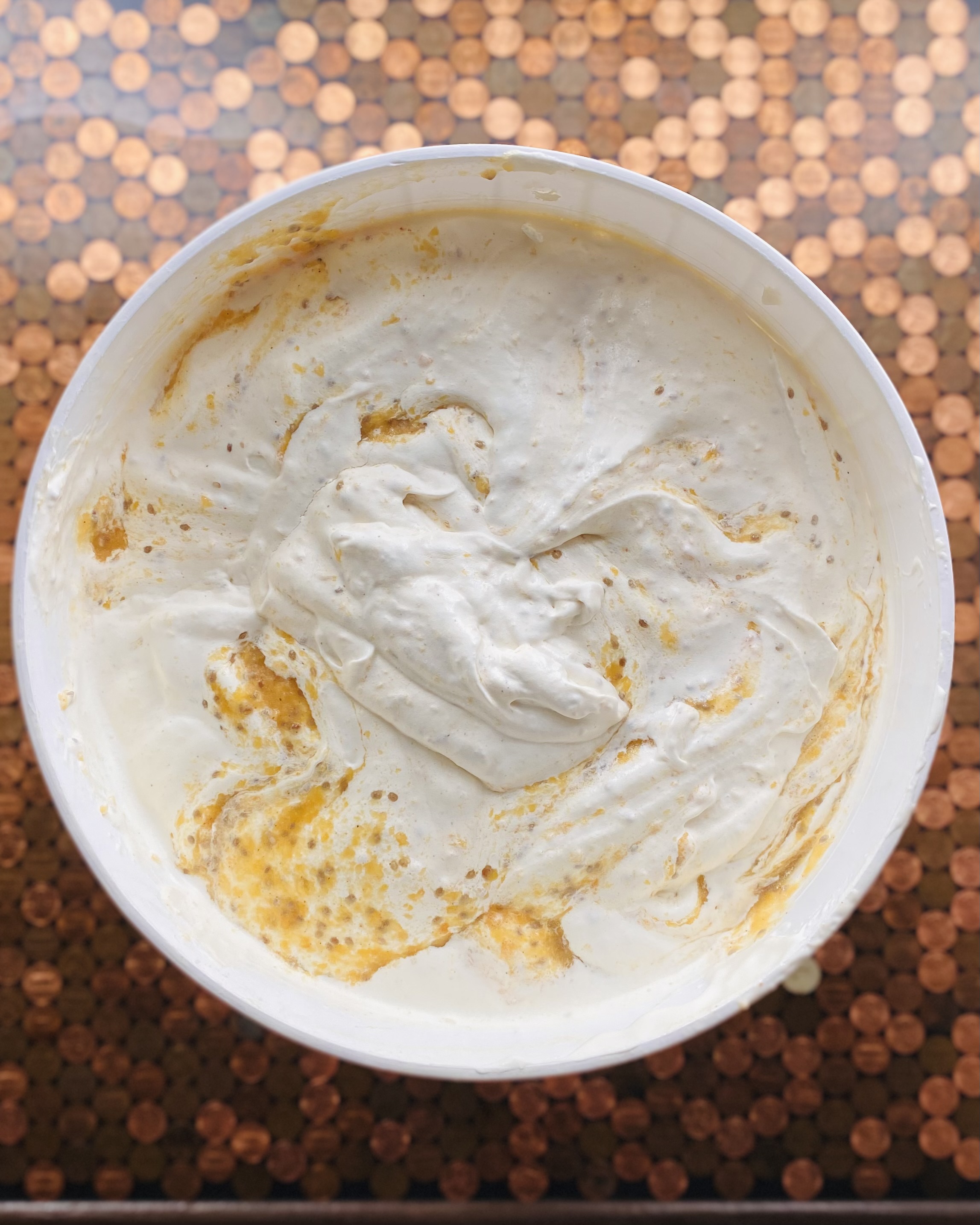 We know, we know, a bit of a mouthful to say, but totally worth each tasty mouthful to eat. It's very herby and cream cheesy, with a bright little punch of color and flavor from our housemade peach chia jam! By the way, chia jam is sooo fun/easy/nutritious to make. Here's a great recipe to follow if you'd like to make it at home. Additionally, here's a fun link about repurposing your peach (or other fruit!) pits.