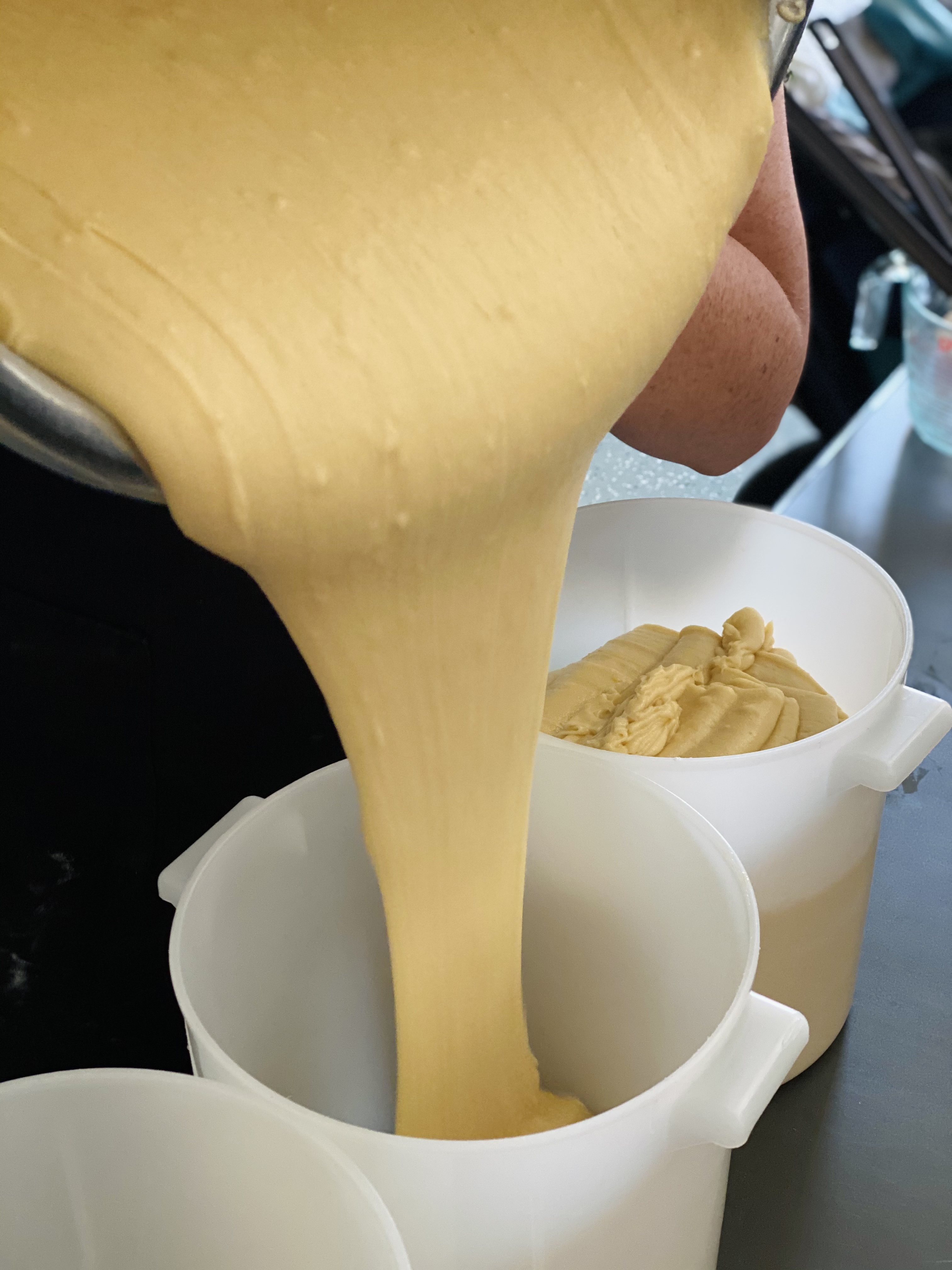On an average summer day, we can go through about 250 of our gluten-free waffle cones (that’s a mix of traditional and chocolate-dipped). These crispy confections are a real labor of love. We make multiple batches of our batter nearly every day in the summer. It's a big ol’ task!