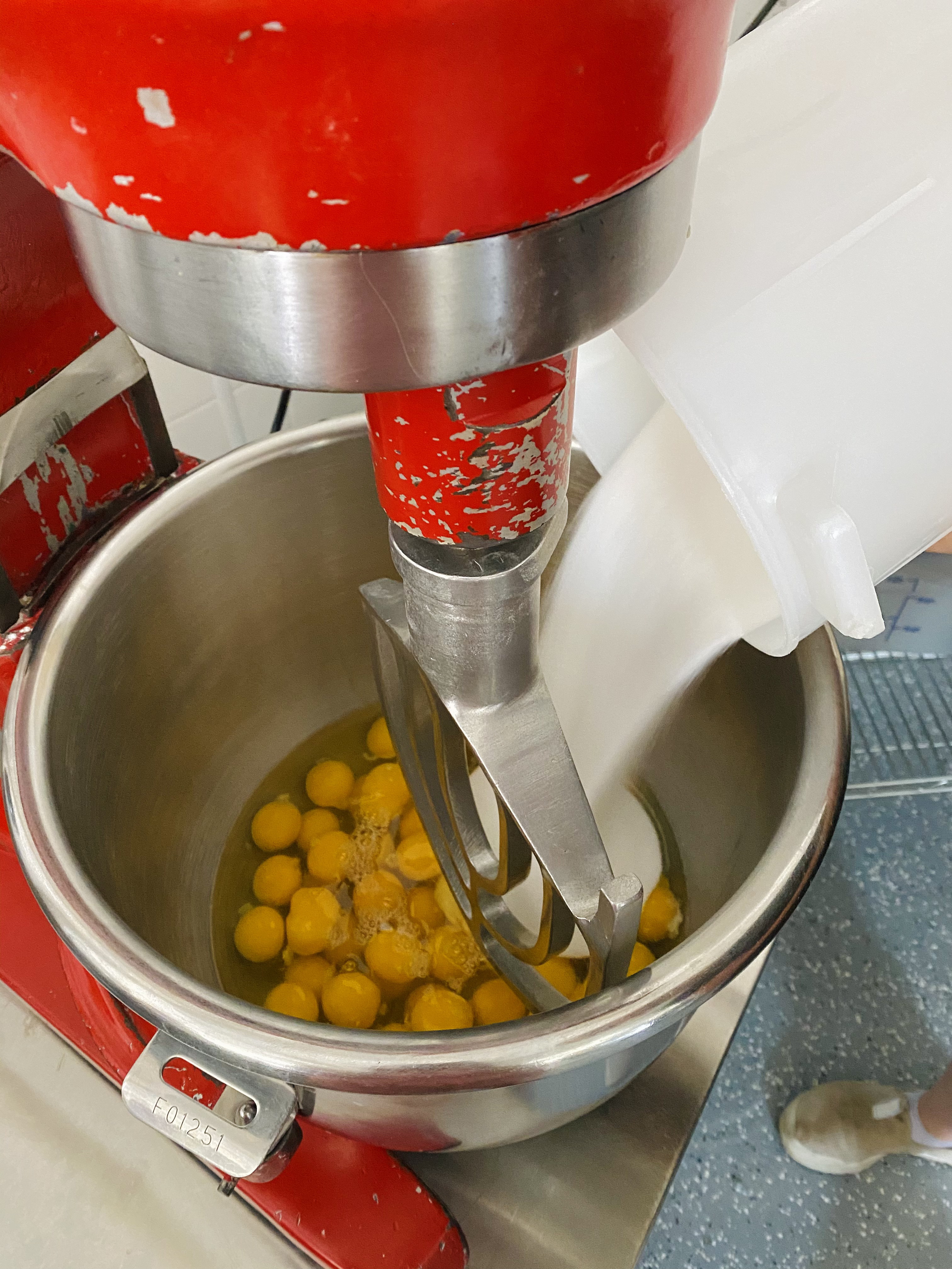 The process of coming up with our final (and unique to LC!) waffle recipe definitely took us a while. We won't divulge all our secrets, BUT...the ingredients are top notch-- eggs, butter, pure maple syrup, a few winks and socially distanced blown kisses-- it's the good stuff. We also use a special blend of gluten-free flours to give us that perfect crispy cone. It all goes in to our trusty 20 qt Hobart mixer, and BOOM-- liquid gold.